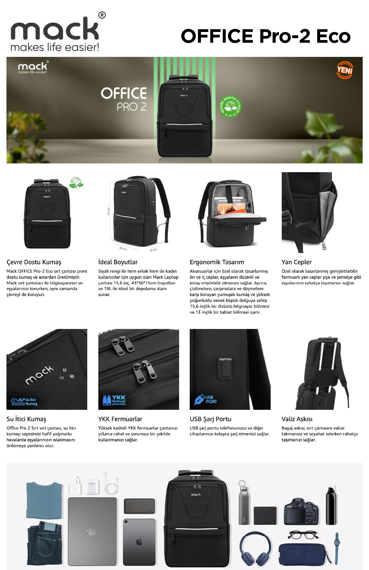 MACK MCE-1203 15.6 OFFICE Pro-2 Eco Notebook Sırt Çantası Siyah