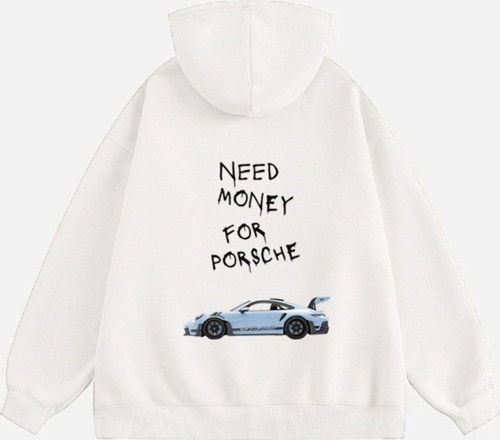 Mad&Calf Unisex Need Money 4 Porsche Baskılı Kapüşonlu Polarlı Oversize Sweatshirt