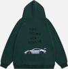 Dijital baskı tekniği ile canlı ve net araba deseni, sweatshirt'e modern bir hava katar