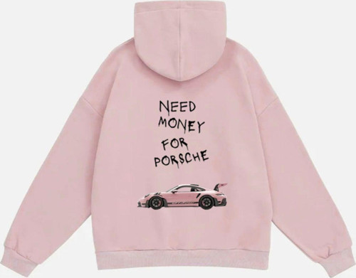 Mad&Calf Unisex Need Money For Porsche Baskılı Kapüşonlu Polarlı Oversize Sweatshirt