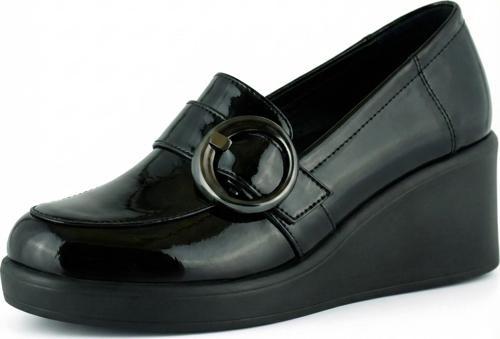 Erkan Saçmacı Madeline Siyah Rugan Hakiki Dana Derisi Tokalı Yuvarlak Burun Dolgu Topuklu Günlük Ayakkabı