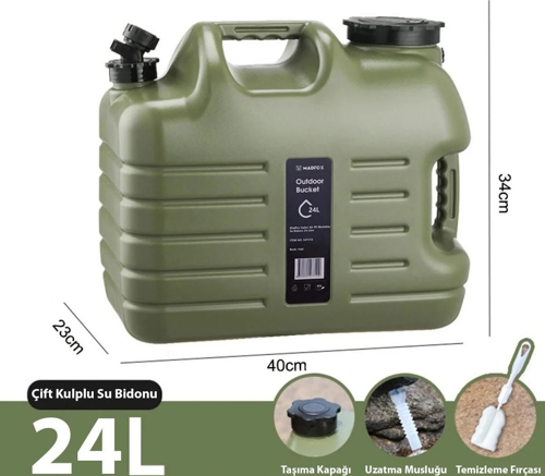Bu su bidonu, 24 litre su kapasitesine sahiptir. Yüksek kapasitesi ile uzun süreli su ihtiyacınızı karşılar.