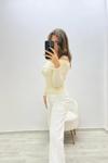 Mihrim Butik marka Madonna Yaka Beyaz Kazak, şıklığı ve rahatlığı bir arada sunar. Hem günlük hayatta hem de özel davetlerde kullanabileceğiniz bu kazak, gardrobunuzun vazgeçilmez parçalarından biri olmaya aday.