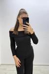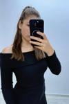 Mihrim Butik Madonna Yaka Siyah Crop Bluz