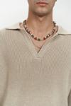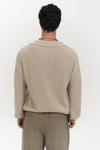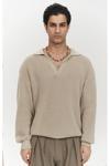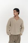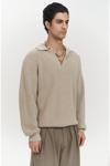 Relaxed fit polo kazak. Önü açık, solapa yaka. Uzun kollu. Fitilli kenarlar.