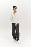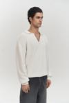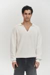 Relaxed fit polo kazak. Önü açık, solapa yaka. Uzun kollu. Fitilli kenarlar.