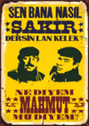 Sarı fon üzerine koyu tonlu, dikkat çekici yazı stili, yıldız figürleri ve Mahmut ile Şakir’in efsane silüetleriyle tablo; nostalji, mizah ve kültürel bağ kuran harika bir dekor objesi. Evde, ofiste, kafede ya da hediye olarak mükemmel!