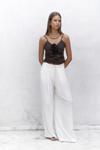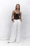 Yan cepli ve arkada biyeli yalancı cepli. Geniş paça palazzo tasarım.