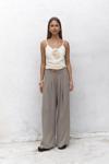 Kemer köprülü,orta bel pantolon. Önde pile detayı.