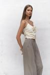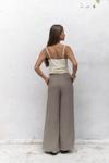Yan cepli ve arkada biyeli yalancı cepli. Geniş paça palazzo tasarım.