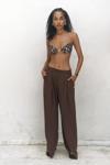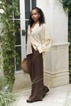 Yan cepli ve arkada biyeli yalancı cepli. Geniş paça palazzo tasarım.