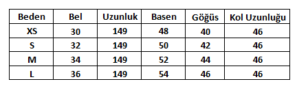 Uzun kollu, göğüs ve bel kısmı pencere detaylı uzun transparan elbise. Önü büzgü detaylı, etek ucu yırtmaçlı ve uç kısımları dantel biye ile tamamlanmıştır. Vücuda oturan formda ve astarsızdır.