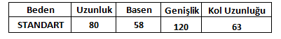 Ürün Beden Tablosu :