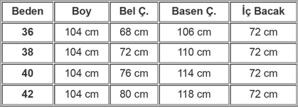Ürün Beden Tablosu:
