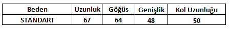 Ürün Beden Tablosu :