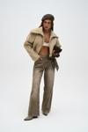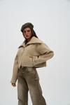 Sateen Bisiklet Yaka Kısa Ceket - Taş