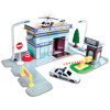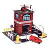 İnşaat, polis, yarış ve itfaiye temalı çeşitli aksesuarlar ve bir oyuncak araç içeren, montajı kolay bir set içerir.