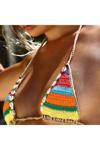 - Üçgen kesimi sayesinde vücut hatlarını zarifçe sararak feminen bir siluet oluşturur