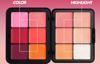 Paletimizde şunları bulacaksınız: Sıcak ve soğuk tonlarda, farklı yoğunluklarda ve bitişlerde 6 pembe, turuncu, mürdüm ve kırmızı allık.
