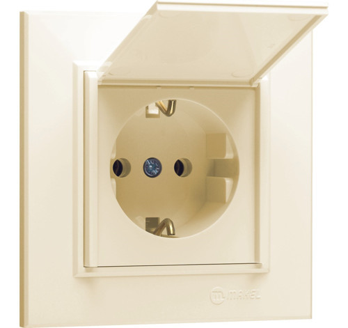 KAPAKLI TOPRAKLI PRİZ MAKEL MARKA KAREA SERİSİ KREM RENK.\nTÜRK TSE STANDART onaylı . 100 % TÜRK MALI 16 A / 250 V AC .Kare şık tasarım minimum yükseklik duvardan boşlukları ideal kapatıyor.\nMutfak, Banyo, Bodrum ,Koridor ve Balkon gibi nemli ve ıslak ortamlara uygun .