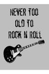 Kaliteli Penye Kadın Erkek Unisex Yetişkin Baskılı Beyaz Gri Tshirt Never Too Old Rock n Roll Tişört
