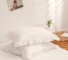 - İncelemekte olduğunuz ürün, sağlığa zararlı kimyasal madde içermeyen OEKO-TEX belgeli yüzde yüz pamuklu 57 tel RANFORCE dokuma kumaştan üretilmiştir. Yüzde yüz pamuklu kumaş özelliği sayesinde cilde rahat bir dokunuş sağlar. Yastık kılıfı setimiz içerisinde iki adet 50x70 cm ölçülerinde çepeçevre fırfır süs dikişi detaylı yastık kılıfı bulunmaktadır.