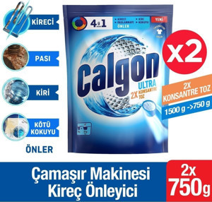 Calgon Power Kir, Pas, Kireç ve Koku Önleyici 4'ü 1 Arada Ultra Konsantre Toz 750 g x 2