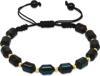 Tesbihane Makrome Örgülü Sarı Dorika Top Süslemeli Su Mavisi-Siyah Ateş Kehribar Kadın Bileklik