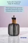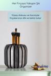 Elegan Tasarım: Altın detaylar ve şeritli tasarımı ile bu organizatör, herhangi bir dekorla uyum sağlayarak evinize modern bir dokunuş katıyor. Hem günlük kullanımınızı kolaylaştırır hem de evinize estetik bir hava katar.