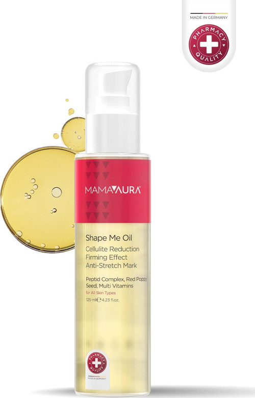Anti-Selülit etki: mamaaura shape me oil, özel olarak gelincik tohumu ekstraktı ve karnitin içeriği ile cildinizdeki selülit görünümünü hafifletir. Kafeine göre 10 kat daha güçlü olan gelincik tohumu ekstraktı, yağları parçalama konusunda eşsiz bir etkiye sahiptir. 12 hafta düzenli kullanımda 2 dereceye kadar selülit görünümünde azalma sağlar.