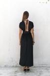 Manarola Büzgü Detay Siyah Uzun Elbise
