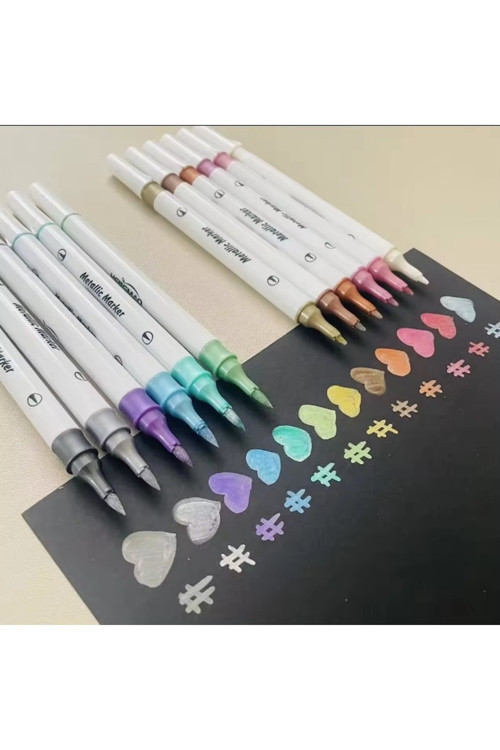 Mandalart Fabric Fırça Uçlu Metalik Akrilik Marker, Profesyonel Kalem Seti, 10’Lu Set