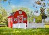 İlhamını Amerikan “red barn” mimarisinden alır: kırmızı dış cephe, beyaz çıtalı süslemeler ve X desenli kapı–pencere formu. Asimetrik kapı–pencere yerleşimi oynayan çocuklara sahici bir çiftlik hissi verir; çevresindeki beyaz çitli bahçe ve posta kutusu rol oyunlarını dışarı taşır. Geniş pencereler (PVC) iç mekânı aydınlatır; sıcak renk paleti bahçede anında odak noktası yaratır.