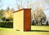 XL hacimli gövde; içeride üç bölmeli akıllı düzen (ortada geniş raflar, yanlarda uzun saplı alet bölmeleri). Çok kanatlı kapaklar geniş açıklık sağlar; tek yöne eğimli üst tasarım yağışı dışarı atar. Yerden yüksek taban zemindeki ıslaklıktan korur; sıcak fındık tonları bahçeyle uyumlu dekoratif bir görünüm oluşturur.