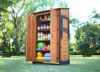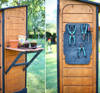 Dış mekân için tasarlandı. Öne eğimli shingle çatı yağmuru uzak tutar ve duvara sıfır yerleşim sağlar. Yerden yüksek gövde nemden korunur. Bir yanda katlanır çalışma tezgâhı, diğer yanda el aleti avadanlığı ile küçük alanda büyük verim sunar. Çift kapaklı ve engelsiz eksiz tam erişim ön yüz, geniş iç hacme ferah erişim sağlar.