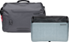 Manfrotto'nun gri Manhattan Speedy-30 Messenger'ı, hareket halindeki fotoğrafçıların ihtiyaçlarını karşılamak için tasarlanmış, haberci tarzı kompakt bir kamera çantasıdır. Ana bölmenin içinde, 70-200mm f/4 lens dahil olmak üzere üç lensle birlikte orta boy bir DSLR veya aynasız bir kamerayı tutabilen iki dolgulu, ayarlanabilir ayırıcıya sahip çıkarılabilir bir ekipman girişi bulunur. Bölücüler, ek içinde taşınan özel ekipmana göre yapılandırılabilir ve dahil edilen esnek paneller, takılı bir lense sahip bir kameranın tutacağı gibi kavisli yüzeyleri beşikler. Kullanım sırasında, esnek bölücü paneller, bu kavisli yüzeyler ve bitişik öğeler arasındaki korumayı artırırken, ek içindeki alanın daha verimli kullanımı için aralarındaki alanı en aza indirir.