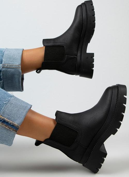Misty Kadın Hakiki Deri Çift Tarafı Lastikli Siyah Bot