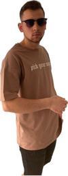 Manklas Erkek Tişört Baskılı Bisiklet Yaka Oversize Süt Kahve Comfort T-shirt Erkek Tshirt