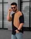 Tişört Erkek Parçalı Desen Regular Fit Bisiklet Yaka Bürümcük Tshirt Erkek T-Shirt