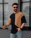 ManKlas Tişört Erkek Parçalı Desen Regular Fit Bisiklet Yaka Bürümcük Tshirt Erkek T-Shirt