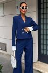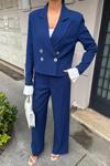 - Lacivert rengiyle şıklığı ve zarafeti bir arada sunan kruvaze ceketli takım, günlük kullanım için idealdir.; - Düz deseni sayesinde kolayca kombinlenebilir ve her ortama uyum sağlar.; - Regular kalıbıyla rahat bir oturuş sunar; hareket özgürlüğünüzü kısıtlamaz.; - Dokuma kumaşı dayanıklılığı artırırken, pamuklu materyali konforunuzu ön planda tutar.; - Normal boy tasarımıyla farklı vücut tiplerine hitap ederken, lacivert rengiyle zamansız bir stil oluşturur.; - Cool & comfort persona ile casual/günlük ortamlarda rahatlıkla tercih edilebilir.; - Casual koleksiyonun parçası olarak tüm sezonlarda gardırobunuzda yerini alır.; - İki parçadan oluşan set içeriği (ceket-pantolon) hem pratiklik hem de şık görünüm sağlar.; - Paket içeriğindeki 2'li set sayesinde bütünsel bir görünüm elde edersiniz.; - Regular siluetiyle her bedene uygunluk gösterirken, lacivert tonlarıyla sofistike bir hava katmanızı sağlar.
