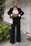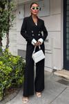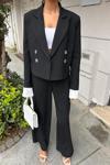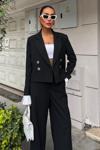 - Şık ve modern bir görünüm sunan siyah kruvaze ceketli takım, günlük kullanım için idealdir.; - Düz deseniyle kolayca kombinlenebilir ve her ortama uyum sağlar.; - Regular kalıbı sayesinde rahat bir oturuş sunar ve vücut hatlarını nazikçe sarar.; - Dokuma kumaşı dayanıklılığı artırırken, pamuklu materyali konforlu bir deneyim sağlar.; - Normal boy tasarımı ile farklı boylardaki kullanıcıların rahatlıkla tercih edebileceği bir yapıdadır.; - Cool & comfort persona'sına hitap ederek hem şıklığı hem de rahatlığı ön planda tutar.; - Casual/günlük koleksiyonun parçası olarak, her gün kullanabileceğiniz pratik bir seçenektir.; - İki parça içeren set; ceket ve pantolondan oluşur ve tam bir uyum sergiler.; - 2'li paketi sayesinde bütünsel bir stil oluşturmanızda yardımcı olurken, tüm sezonlarda gardrobunuzun vazgeçilmezi haline gelir.; - Alt-üst takımıyla kombininizi hızlıca tamamlamanız için mükemmel bir çözüm sunar.