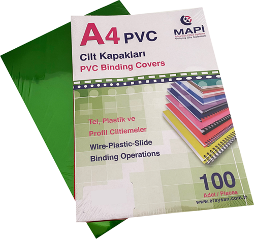 Mapibind 160mic. A-4 Pvc Ciltleme Kapağı Yeşil Şeffaf 100 Adet Mapi A4 PVC Şeffaf Cilt Kapağı, 160 mic. Yeşil Şeffaf Renk : Yeşil Şeffaf Ölçü : A4 Kalınlık : 160 mic. Pakette : 100 adet