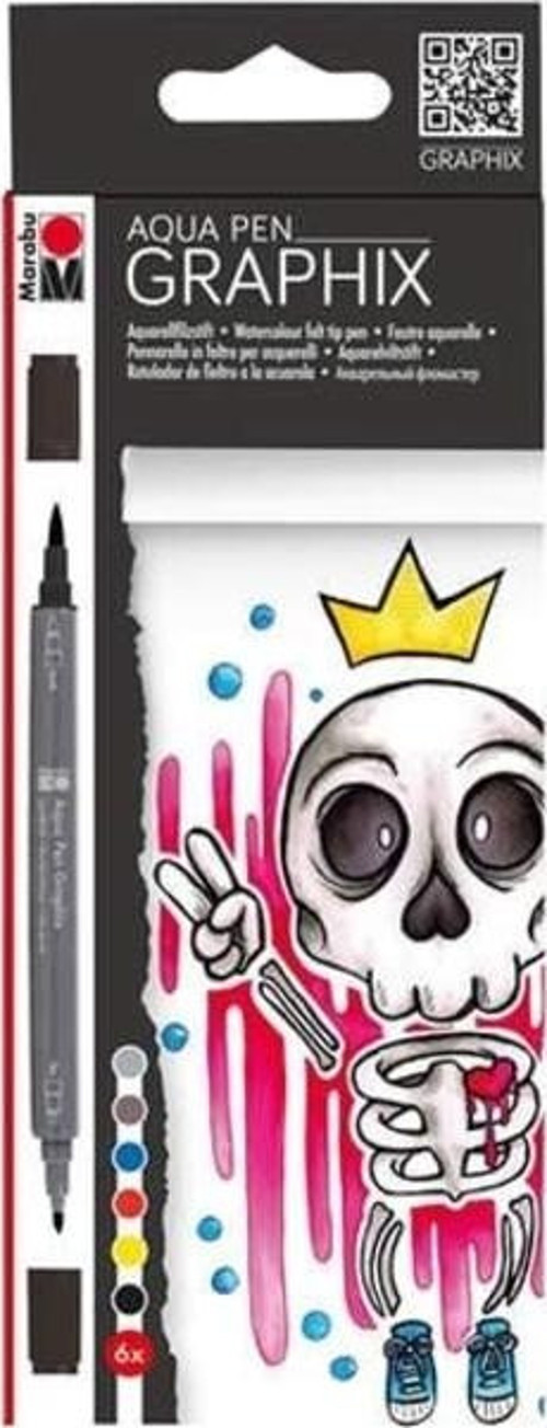 Marabu Graphix Aqua Pen Çift Uçlu Grafik Çizim Manga Kalemi 6 Renk Set King Of Bubblegum