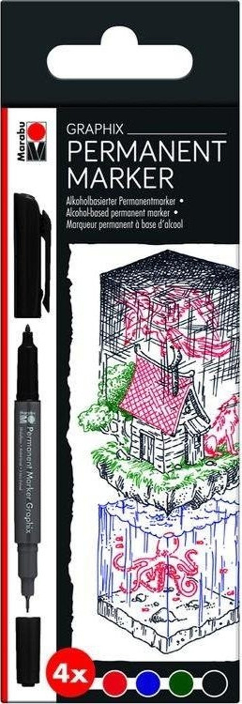 Marabu Graphix Permanent Marker Çift Uçlu 4 renk Set