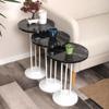 Zigon Sehpa Osm 11757 YUVARLAK METAL MODEL Metal Ayak Parlak KREM Lake Demont 3LÜ - Image 1