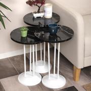 Bengi Ticaret Zigon Sehpa Osm 11757 YUVARLAK METAL MODEL Metal Ayak Parlak KREM Lake Demont 3LÜ