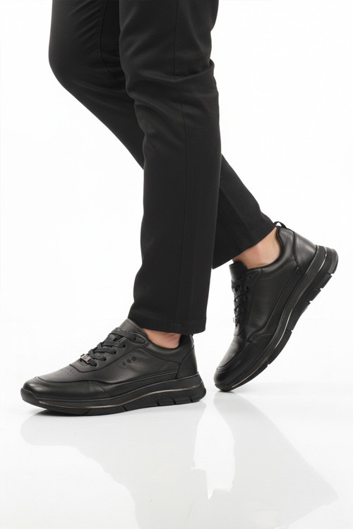 Siyah Hakiki Deri Bağcıklı Erkek Sneaker 152-22336 M
