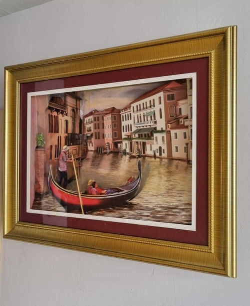 Marina Hediyelik Üç Boyutlu - Venedik Kano Gezinti Temalı Rölyef Tablo - 61X45 Cm