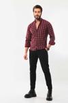 Marisso Erkek Kare Desenli Uzun Kol %100 Pamuk Gömlek 1502 Bordo
